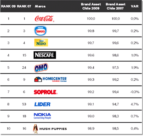 Which are the strongest brands? Has the crisis knocked their image? Which branding trends have grown in the last two years in Chile? Which brands are pure energy? Why some of them are going up and some down?